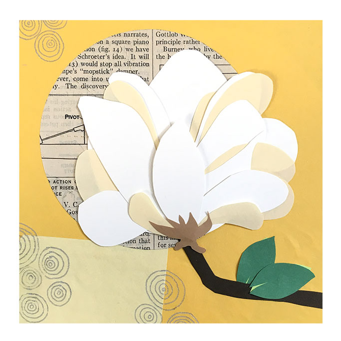 Handcut paper interpretations of the different state flowers through a combination of pattern, paper, ink, and collage.